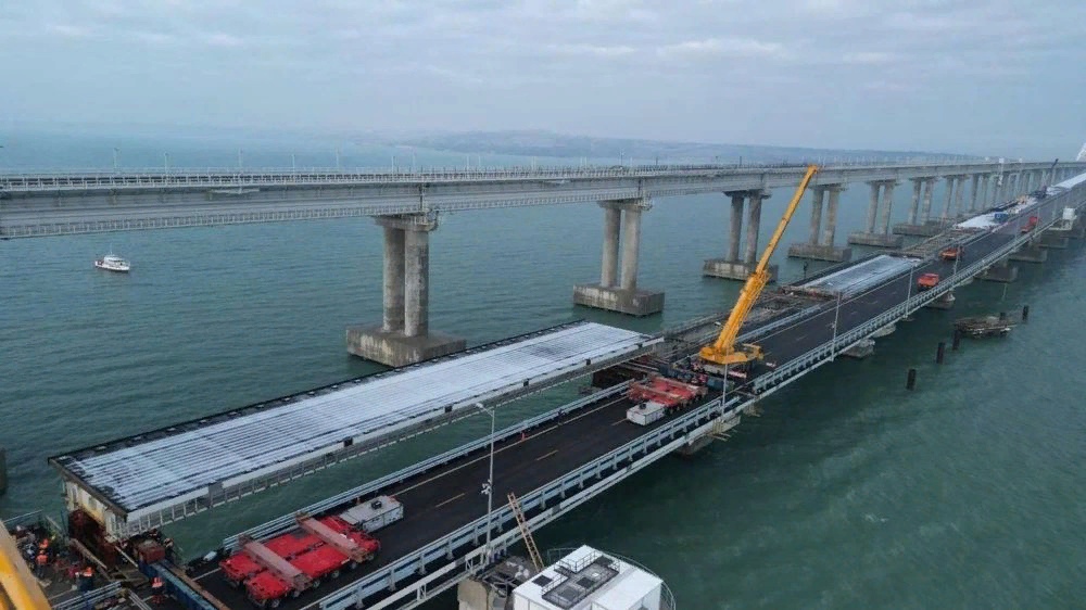 «Надвижка первого пролета была выполнена несколько дней назад, он уже занял свое место на опорах моста. Можно сказать, что закончена практически половина запланированных работ по замене пролетов левой стороны. В следующем месяце все четыре новых пролета левой стороны займут свое проектное положение, и можно будет приступать к финальным работам», — написал Хуснуллин в своем Telegram-канале.